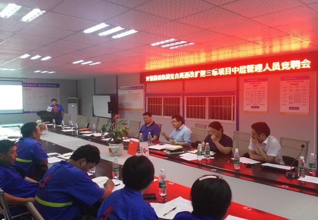 6月26日晚,蕪合高速改擴(kuò)建三標(biāo)項(xiàng)目中層管理人員競聘活動(dòng)于項(xiàng)目部會(huì)議室順利舉行。公司人力資源部部長陳大勤、工管部副部長盛軍、總工辦、監(jiān)察室、咨詢公司和一分公司(籌備組)等領(lǐng)導(dǎo)組成競聘上崗領(lǐng)導(dǎo)小組共同參與此次崗位競聘的評(píng)審工作。