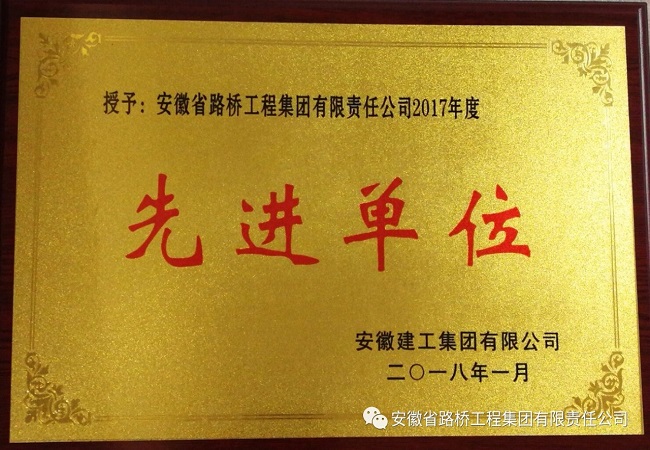 1月31日,在集團(tuán)公司一屆四次職代會暨2018年工作會上,安徽路橋集團(tuán)被授予集團(tuán)公司2017年度先進(jìn)單位榮譽(yù)稱號,這是公司連續(xù)兩年獲此榮譽(yù)。