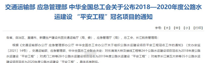 “平安工程”冠名活動由交通運輸部、應(yīng)急管理部、中華全國總工會組織評選,旨在深入推進(jìn)平安工地長效機(jī)制建設(shè),不斷提升公路水運工程建設(shè)安全管理水平,引導(dǎo)和激勵企業(yè)加強(qiáng)安全生產(chǎn)工作。沱澮河是中部地區(qū)及豫皖兩省規(guī)劃的區(qū)域性重要航道,被列入交通部水運交通“十二五”規(guī)劃,沱澮河航道整治工程的建設(shè)對實施“一帶一路”和長江經(jīng)濟(jì)帶戰(zhàn)略,促進(jìn)皖北水運事業(yè)和經(jīng)濟(jì)社會發(fā)展意義重大。