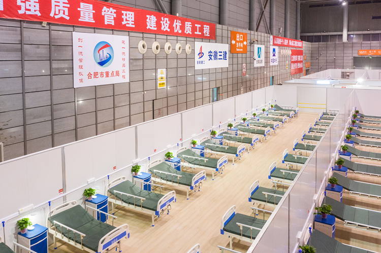 4晝夜的時間里,安徽三建以高效的組織協(xié)調(diào)和強有力的資源調(diào)配能力,迅速完成12456平方米改造任務(wù),建成擁有1040張標(biāo)準(zhǔn)病床的方艙病房;改建1880平方米餐飲中心,新建722平米醫(yī)護衛(wèi)生通道以及配套的水電、暖通、污水處理、智能化等裝飾安裝工程,得到業(yè)主高度評價。