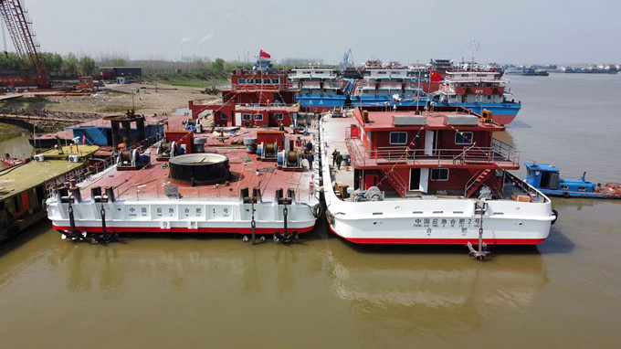 “中國應急合肥1號”和“中國應急合肥2號”是國家應急管理部系列工程船中第一批開建的水上救援工程船,也是安徽省應急管理廳首批水上救援工程船,由120噸自航起重船和800噸甲板貨船組成,具備水上應急救援、應急搶險等救援功能,且兼顧航道疏浚、工程樁施打以及貨物運輸?shù)瘸R?guī)工程施工能力。作為安徽省內(nèi)水運領域的“尖兵”,安徽交航于2021年從省應急管理廳接下水上應急救援船舶監(jiān)督建造任務,公司領導高度重視,迅速成立領導小組,抓緊推動船舶設計、建造任務落實工作,并于當年9月18日在蕪湖皖南造船廠啟動建造。2021年12月19日,國家應急管理部正式將應急救援船命名為“中國應急合肥1號”和“中國應急合肥2號”。