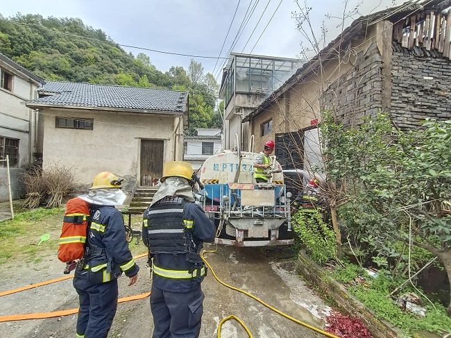 由于武陽鄉(xiāng)地處山區(qū),山路崎嶇狹窄,消防人員趕到火災(zāi)現(xiàn)場至少需要40分鐘,眼看火勢順著風(fēng)勢越來越大,現(xiàn)場情況十分危急,項(xiàng)目救援小隊(duì)以最快速度趕赴火災(zāi)現(xiàn)場?;饒鲋校?duì)員們頂著滾滾濃煙和灼熱的巨浪,在保證自身安全的前提下,積極滅火。經(jīng)過半小時的奮力撲救,火勢逐漸得到控制,為救援贏得了時間。最終,經(jīng)過消防員的撲救,火勢得以熄滅?,F(xiàn)場人員全部安全疏散,無人員傷亡,最大程度減輕了人民群眾的財產(chǎn)損失。