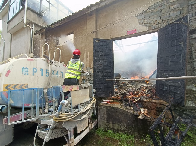 3月29日下午2點(diǎn)左右,安徽路橋集團(tuán)黃千高速02標(biāo)項(xiàng)目所在的武陽鄉(xiāng)一制茶傳統(tǒng)作坊突發(fā)火災(zāi),現(xiàn)場濃煙滾滾,火勢猛烈。項(xiàng)目部現(xiàn)場施工人員察覺到火情后,立刻撥打119報警并向項(xiàng)目部反饋。對此,項(xiàng)目部第一時間做出緊急部署,迅速安排由安全部牽頭,組建應(yīng)急救援小隊(duì),從施工現(xiàn)場調(diào)派灑水車第一時間奔赴現(xiàn)場參與滅火。
