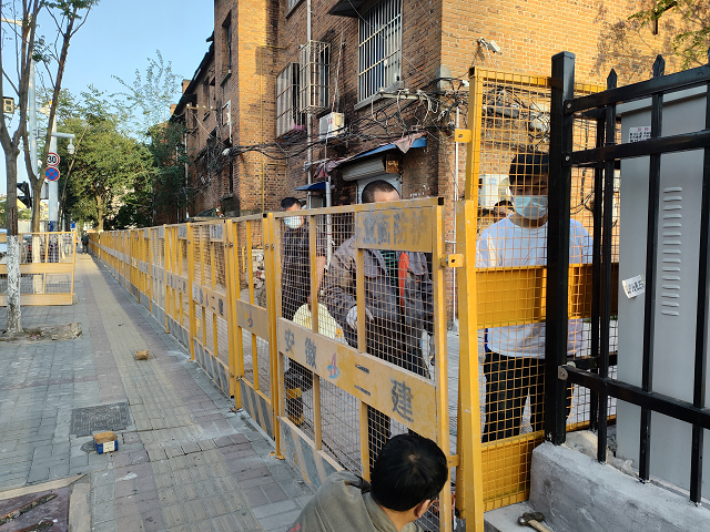 目前疫情防控形勢嚴(yán)峻,4月8日接合肥市疫情防控通知,要求各轄區(qū)內(nèi)“三無”小區(qū)實行臨時封閉管理。由于公司居民住宅小區(qū)交通出入口較多,防控難度較大,為了更好地協(xié)助轄區(qū)政府實施封閉式管理,公司積極響應(yīng)號召,落實后勤綜合服務(wù)部牽頭,機(jī)械分公司全力支持配合,抽調(diào)施工人員、調(diào)遣防護(hù)設(shè)施前往小區(qū)各出入口安裝圍擋,進(jìn)行臨時封閉,經(jīng)過努力圓滿完成了建設(shè)任務(wù)。