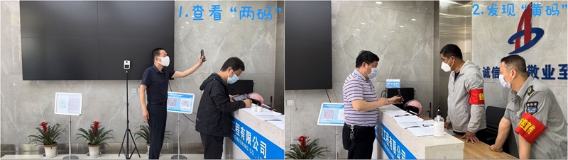 公司機(jī)關(guān)疫情防控應(yīng)急演練依據(jù)《安徽一建機(jī)關(guān)疫情防控應(yīng)急演練方案》,按照“預(yù)防為先、分級(jí)管控、迅速處置”的工作原則,模擬了職工在上班進(jìn)入大門后例行“測(cè)體溫、驗(yàn)兩碼”時(shí),發(fā)現(xiàn)其中一名職工健康碼為黃碼的應(yīng)急處置流程。演練過(guò)程分為查看“兩碼”、發(fā)現(xiàn)異常情況、立即報(bào)告、帶入隔離室、封閉大門、全面消毒等主要場(chǎng)景。
