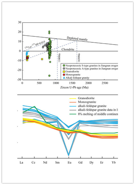 該成果研究了皖南地區(qū)花崗巖類型、主要礦物成分等特征,通過不同類型花崗巖主微量元素特征與放射性同位素衰變周期和衰變核量推斷出皖南地區(qū)不同類型花崗巖之間的協(xié)變關(guān)系;通過數(shù)值計算和模擬創(chuàng)新性的提出花崗巖產(chǎn)生于不同比例古老地殼的部分熔融和深部巖石圈地幔參與反應(yīng)的蹤跡。