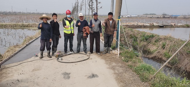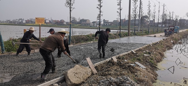 因村路損壞,與合廬產(chǎn)業(yè)新城項目部駐地一條馬路之隔的薛家圩村民出行飽受影響,項目部在處理地方協(xié)調(diào)事務(wù)時得知此情況,第一時間與薛家圩村干部積極溝通,奔赴現(xiàn)場查看情況并制定方案。隨后,工程部合理組織混凝土罐車、材料等,帶著村書記和村民們一同將薛家圩村損壞的道路進(jìn)行修復(fù),為百姓解決出行問題。