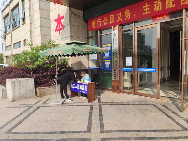 馬鞍山九華路項目慎始如終抓好常態(tài)化疫情防控工作,安排專人對來訪人員進行嚴格排查,對項目進出人員進行測溫、消毒,查看安康碼、行程碼,詳細登記人員信息,各項數(shù)據(jù)正常方可入內(nèi)。綜合部負責防疫宣貫及每日消殺工作,確保對項目部內(nèi)外全面消殺到位;另外,項目部實施分批分時就餐的方式,要求員工減少聚集,避免病毒傳播。