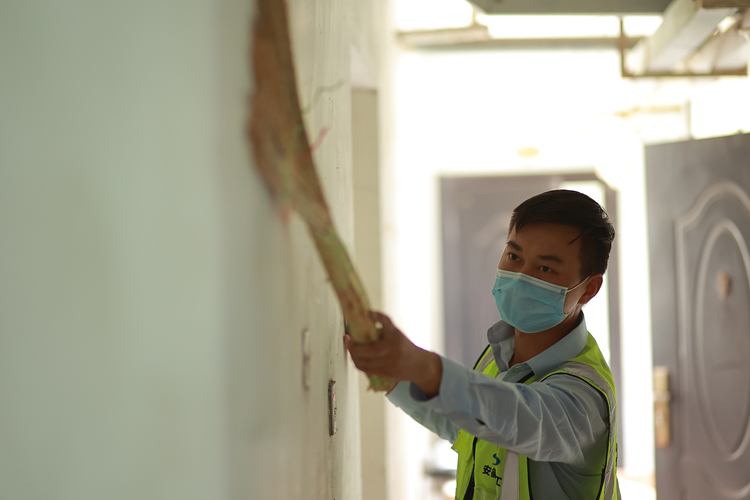 21日下午6點(diǎn),項(xiàng)目建設(shè)全面鋪開,同步推進(jìn),十幾個(gè)專業(yè)、220多名建設(shè)者,4輛大型運(yùn)輸貨車通宵鏖戰(zhàn),面對(duì)超大面積、超短時(shí)間的建設(shè)任務(wù),安徽三建倒排工期,采取“分區(qū)作戰(zhàn),分時(shí)推進(jìn)”模式,模塊化運(yùn)作,提升管理精度,共計(jì)完成施工面打磨約850平米,墻面天棚鏟除、批膩?zhàn)?40平米,裂縫處理280米,水電維修2000余處,對(duì)約14萬(wàn)平米的528套隔離房進(jìn)行了7遍衛(wèi)生清潔,整個(gè)健康驛站以小時(shí)為單位快速成型。23日下午6點(diǎn),528套隔離間全部改造完成。