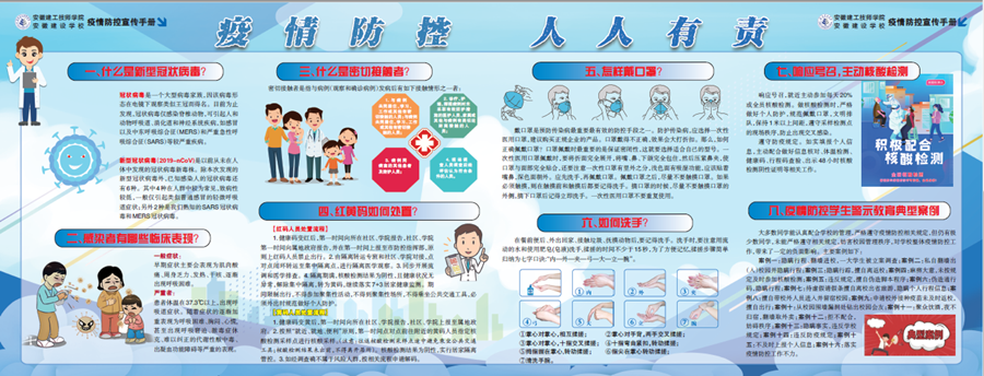 為深入貫徹落實(shí)習(xí)近平總書記關(guān)于疫情防控的重要指示精神,堅(jiān)持“外防輸入、內(nèi)防反彈”總策略和“動(dòng)態(tài)清零”總方針不動(dòng)搖,落實(shí)黨中央、國(guó)務(wù)院決策部署和省委省政府、市委市政府及省市教育、人社廳局、安徽建工集團(tuán)有關(guān)工作要求,引導(dǎo)全校師生科學(xué)、全面了解掌握新型冠狀病毒感染的肺炎相關(guān)防控知識(shí),科學(xué)防護(hù)、理性對(duì)待,積極做好學(xué)校新冠肺炎疫情防控工作,堅(jiān)決阻擊疫情輸入校園,保障廣大師生員工生命安全和身體健康,學(xué)院疫情防控辦公室編印了《安徽建工技師學(xué)院疫情防控宣傳手冊(cè)》。