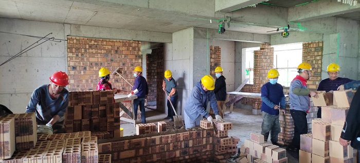 固鎮(zhèn)縣立新花園棚戶區(qū)改造項目部積極克服當(dāng)前疫情和物資供給受限影響,組織200余名工人“五一”搶抓砌體和二次結(jié)構(gòu)施工,為下步主體竣工驗收奠定基礎(chǔ)。截至目前,項目主體結(jié)構(gòu)已完成88%,8棟樓均已開始砌體施工。