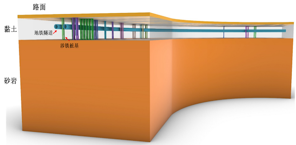文忠路高架橋01標項目是安徽省第一條,也是目前唯一一條在運營地鐵上建設的快速路網(wǎng)高架橋項目,與地鐵3號線竇橋灣站至幼兒師范站線路存在相互交錯、上下重疊和長距離緊鄰并行的空間關系,項目整體位于地鐵保護區(qū)范圍內(nèi),多根樁基需在地鐵三號線兩區(qū)間隧道之間鉆孔作業(yè),距離軌道約2m,要求項目施工必須精準鉆孔,減少土壤擾動,保證地鐵3號線的安全穩(wěn)定運營。