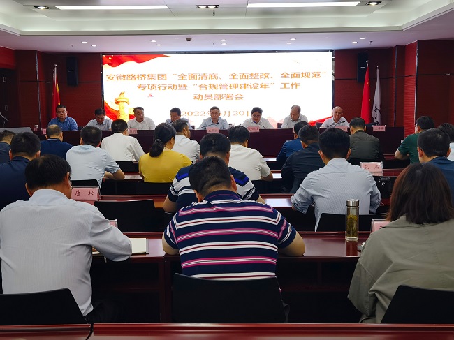 5月20日下午,安徽路橋集團召開“全面清底、全面整改、全面規(guī)范”專項行動暨“合規(guī)管理建設(shè)年”工作動員部署會。建工控股黨委委員、副總經(jīng)理、路橋集團黨委書記、董事長盛明宏出席會議,公司領(lǐng)導(dǎo)班子成員參加會議。會議由黨委副書記干戈主持。