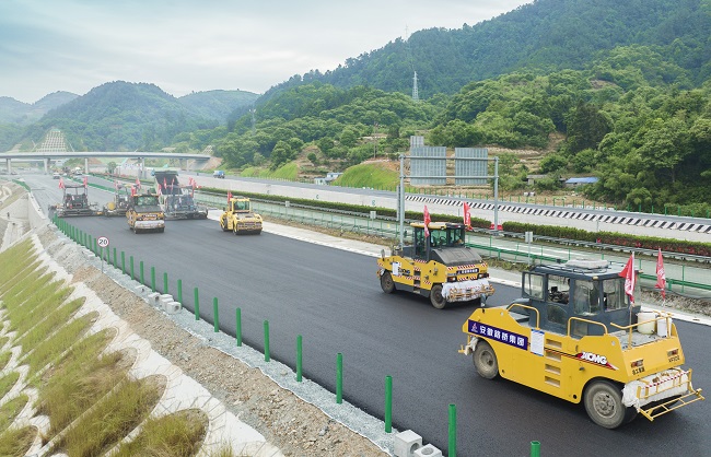 報道指出,5月19日,在黃千高速與杭瑞高速接駁匝道路面施工現(xiàn)場,運料車不斷往返、攤鋪機、壓路機有序運行,工地上機聲轟鳴,施工場面熱火朝天。