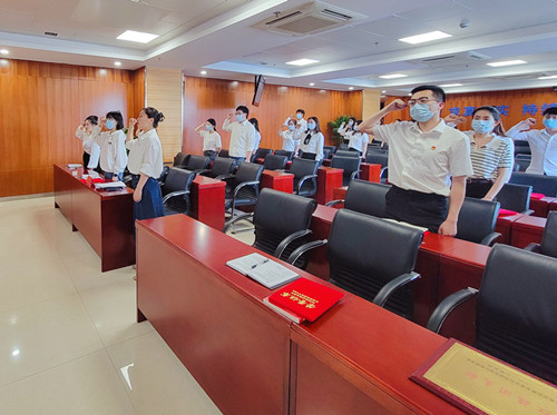 會(huì)上還開展了《團(tuán)的光輝歷史》主題團(tuán)課教育,全體團(tuán)員佩戴團(tuán)徽,肅目注立,高舉右拳,面向團(tuán)旗重溫入團(tuán)誓詞。