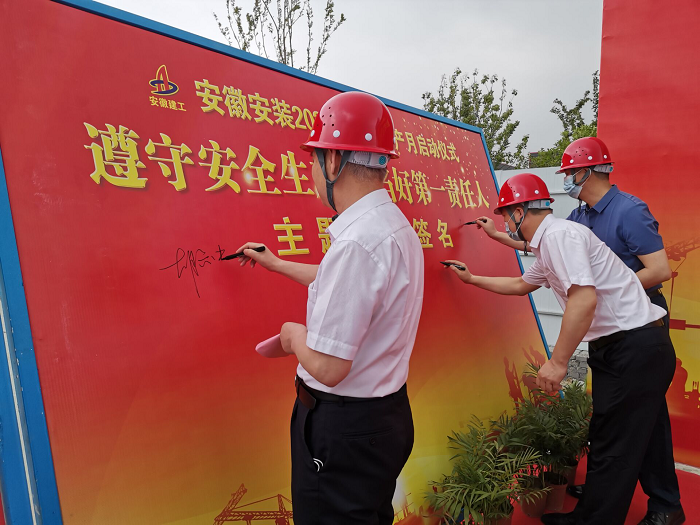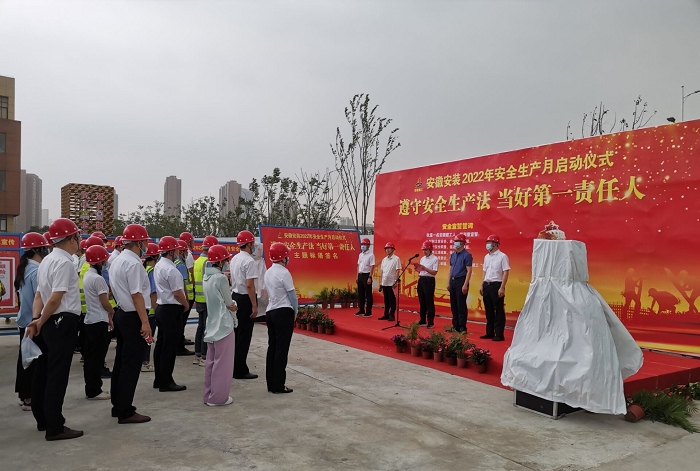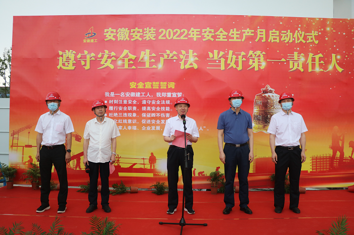 在全國(guó)第21個(gè)“安全生產(chǎn)月”活動(dòng)到來之際,5月30日上午,安徽安裝公司2022年“安全生產(chǎn)月”啟動(dòng)儀式在年配套1000萬臺(tái)新能源汽車及年產(chǎn)2億臺(tái)制冷空調(diào)壓縮機(jī)關(guān)鍵性能件制造基地項(xiàng)目舉行。公司黨委書記、董事長(zhǎng)胡六中,紀(jì)委書記、工會(huì)主席李楊,副總經(jīng)理趙伯平,總工程師吳繼成及機(jī)關(guān)各部門、各分公司代表參加了本次活動(dòng)。