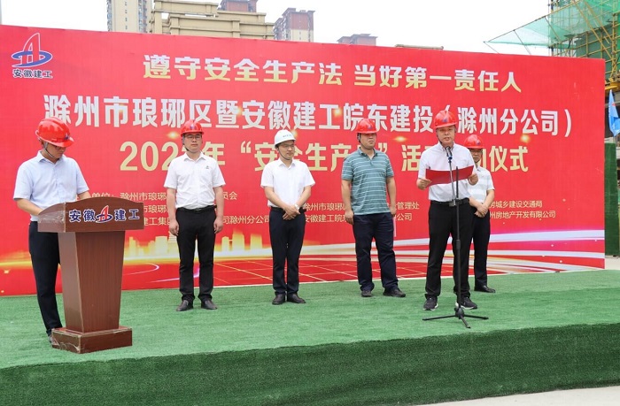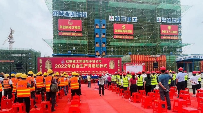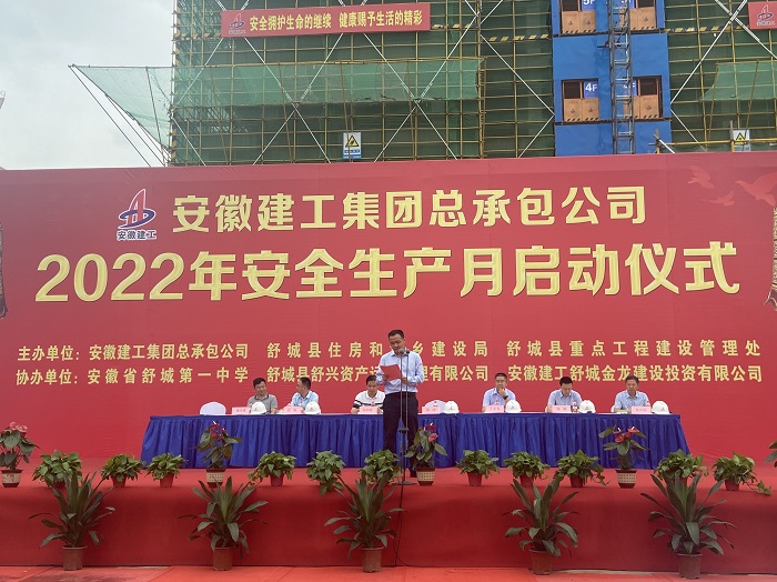 6月1日上午,安建總承包聯合舒城縣住房和城鄉(xiāng)建設局、縣重點工程建設管理處在舒城片區(qū)綜合開發(fā)項目中的舒城一中遷建項目舉行2022年“安全生產月”活動啟動儀式。安建總承包黨委書記、總經理張沖和舒城縣委常委、副縣長劉興旺致辭,副總經理王慶松帶領現場人員宣讀安全誓詞。在儀式后,張沖還拜訪了舒城縣縣長王萬喜。