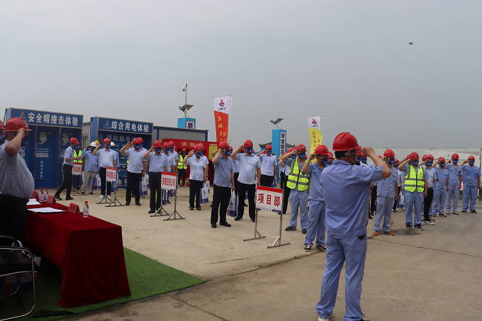 6月1日上午8點30分,安徽交航在引江濟淮項目派河口服務區(qū)施工現(xiàn)場舉行全國第21個“安全生產(chǎn)月”活動啟動儀式,正式拉開了“安全生產(chǎn)月”活動的序幕。公司黨委書記、董事長方申柱出席儀式并講話,公司領導班子成員、省引江濟淮集團肥西建管處副處長宋誠、天津天科工程管理公司派河口水運工程總監(jiān)辦項目總監(jiān)羅江川出席儀式。公司黨委委員、副總經(jīng)理董雙武主持儀式。