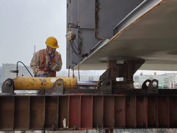 鋼箱梁的橫向精準(zhǔn)滑移不僅為后續(xù)側(cè)滑施工積累了寶貴的施工經(jīng)驗(yàn),也為全面推進(jìn)項(xiàng)目建設(shè)吹響了沖鋒號(hào)角。下一步,科研攻關(guān)團(tuán)隊(duì)將繼續(xù)以扎實(shí)嚴(yán)謹(jǐn)?shù)墓ぷ髯黠L(fēng),系統(tǒng)性開展跨越正常通行市政道路且緊鄰城市運(yùn)營地鐵的鋼箱梁懸拼施工技術(shù)及風(fēng)險(xiǎn)控制研究,為地鐵運(yùn)營和市政道路通行的安全穩(wěn)定保駕護(hù)航,助力合肥城市大建設(shè)。