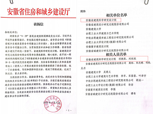 近日,安徽建科收到安徽省住房和城鄉(xiāng)建設(shè)廳表?yè)P(yáng)信。