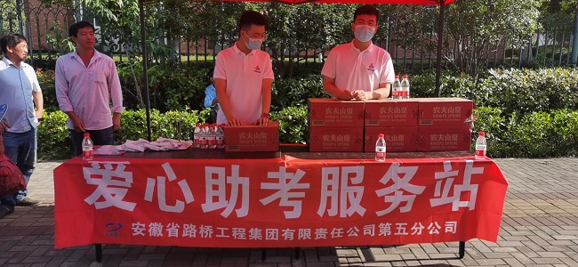 助力中考,盛夏圓夢。6月15日-17日,安徽路橋集團(tuán)兩項(xiàng)目前往中考考點(diǎn)外,開展中考愛心助考活動(dòng)。
