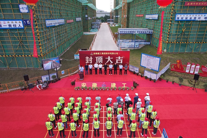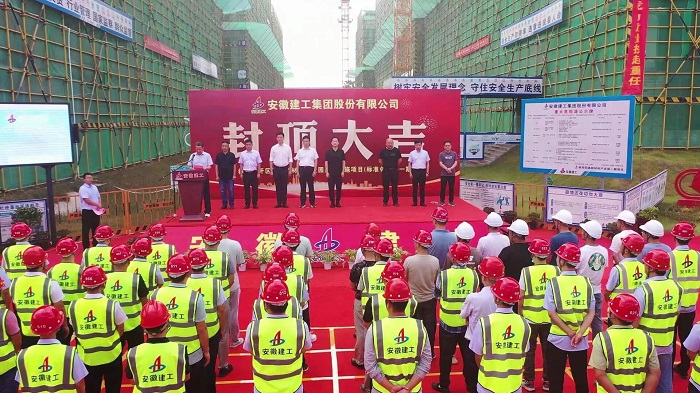 王會情對項目順利封頂表示熱烈祝賀。他指出,安徽建工集團作為省屬大型上市國企,綜合實力強、綜合資源多、產(chǎn)業(yè)鏈基礎(chǔ)完備,該項目建設(shè)進度快、質(zhì)量高,本次項目主體結(jié)構(gòu)順利封頂是安徽建工與樅陽縣戰(zhàn)略合作的首個成果。他表示,樅陽縣將堅持用戶思維和客戶體驗,秉持互利共贏原則,繼續(xù)深化政企戰(zhàn)略合作,共同建設(shè)現(xiàn)代化美好樅陽。