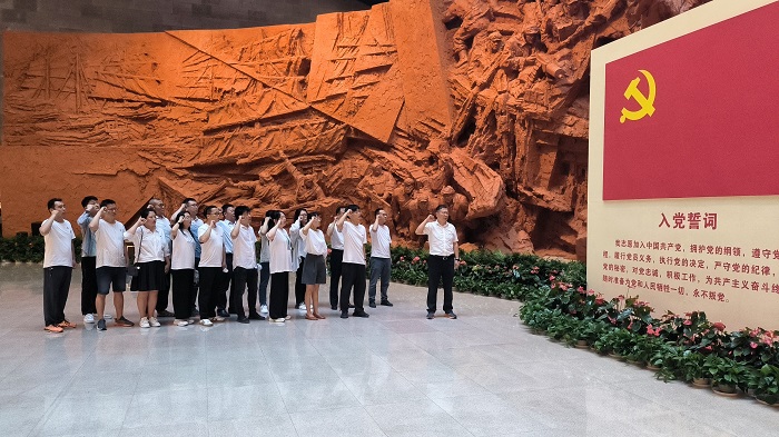 在渡江戰(zhàn)役紀(jì)念館一樓大廳,全體黨員面向黨旗重溫入黨誓詞,宣誓聲鏗鏘有力,彰顯了大家矢志不渝守初心、奮發(fā)有為擔(dān)使命的堅(jiān)定信念。黨員們依次參觀了紀(jì)念館的六個(gè)展廳,通過(guò)實(shí)物、圖片、文字和聲、光、電等現(xiàn)代化手段,學(xué)習(xí)感悟百萬(wàn)雄師過(guò)大江的壯闊歷史畫(huà)卷和艱苦卓絕的崢嶸歲月,在參觀中接受革命傳統(tǒng)教育。
