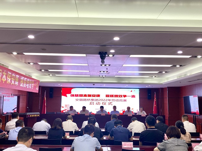 為引導(dǎo)廣大職工充分發(fā)揮勞模精神、勞動精神、工匠精神,快速掀起干事創(chuàng)業(yè)熱潮,全面完成公司年度目標(biāo)任務(wù),6月28日上午,安徽路橋集團(tuán)2022年“強(qiáng)基固本保安康 提質(zhì)增效爭一流”勞動競賽啟動儀式在安建國際大廈8樓會議室舉行。公司在肥領(lǐng)導(dǎo)班子成員,機(jī)關(guān)相關(guān)部門負(fù)責(zé)人,分子公司主要負(fù)責(zé)人、分管生產(chǎn)副經(jīng)理及工會主席等50余人參加會議。