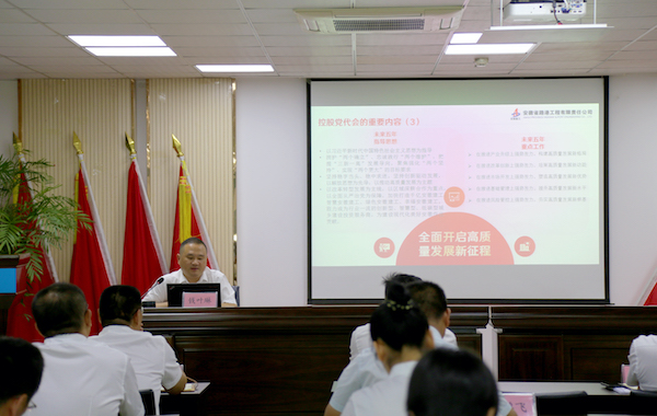 錢葉琳還結(jié)合趙時運(yùn)書記在建工控股第一次黨代會上的報告精神,為全體參會人員上了一堂生動的黨課。黨課重點對控股首次黨代會精神進(jìn)行了解讀宣貫。結(jié)合近期工作重點,錢葉琳指出:要錨定戰(zhàn)略、苦練內(nèi)功、健全機(jī)制、積累資源、強(qiáng)建體系,推進(jìn)安徽路港在時代的浪潮中行穩(wěn)致遠(yuǎn)。錢葉琳號召:公司上下要把深入學(xué)習(xí)貫徹建工控股第一次黨代會精神作為當(dāng)前和今后一個時期的首要任務(wù),深刻領(lǐng)會核心要義,結(jié)合實際抓好落實,乘著控股首次黨代會的東風(fēng),讓安徽路港公司成為實現(xiàn)千億安徽建工的中堅力量!