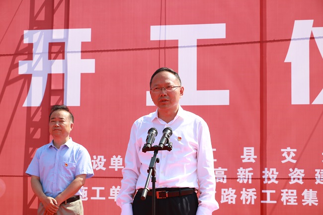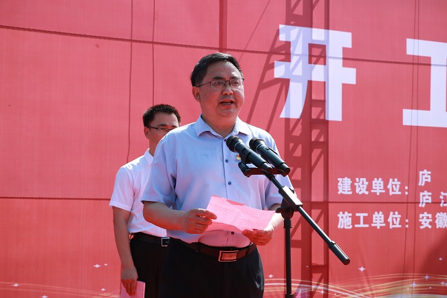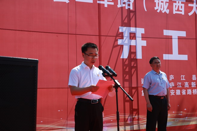 劉慶春主持開工儀式,簡要介紹廬江縣二軍路工程項(xiàng)目,并對各參加單位及項(xiàng)目建設(shè)提出殷切期許。