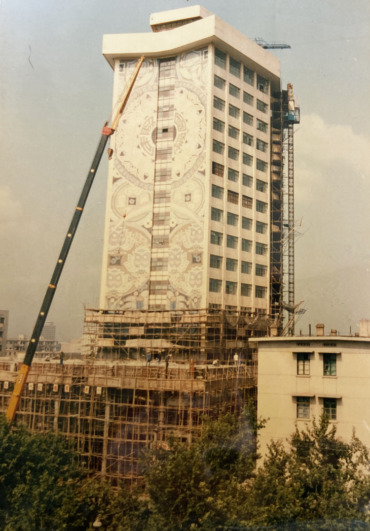 由公司承建的金融大廈建成于1984年,西鄰金寨路,北鄰紅星路。該建筑共17層,是合肥市最早的高層建筑之一,造型極具個(gè)性,平面為不規(guī)則六邊形,西山墻面向內(nèi)凹陷,墻面上的“國(guó)逢盛世”和“長(zhǎng)樂通寶”壁畫高50米,面積達(dá)400余平方米,裝飾風(fēng)格富有特色。該建筑壁畫整體形態(tài)別具一格,反映了合肥市上世紀(jì)80年代建筑造型特色。建筑面積13811平方米。