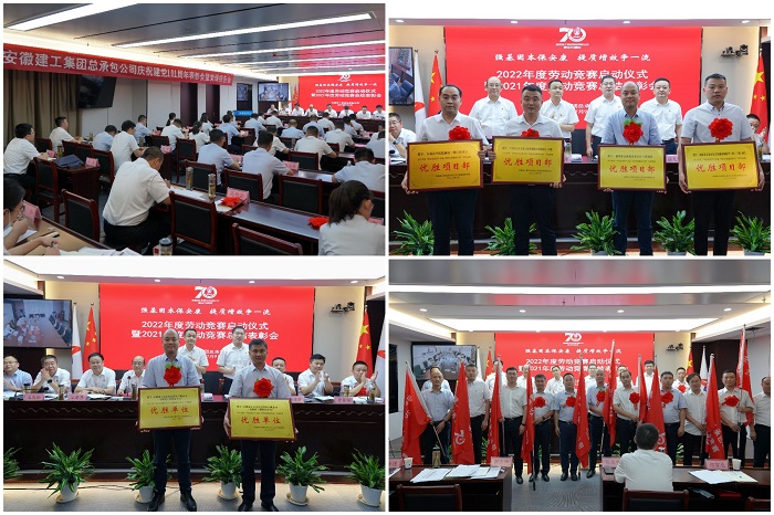 在2022年度勞動競賽啟動儀式暨2021年度勞動競賽總結(jié)表彰會上,參會領(lǐng)導(dǎo)為勞動競賽優(yōu)勝單位及優(yōu)勝項目部頒獎,并向各參賽單位授旗。皖東建投(滁州公司)、涇縣“四館”項目和固鎮(zhèn)立新花園棚改項目分別代表優(yōu)勝單位和優(yōu)勝項目部進行交流發(fā)言,長江建投(銅陵公司)代表參賽單位進行勞動競賽宣誓。張沖宣布2022年度勞動競賽正式啟動。