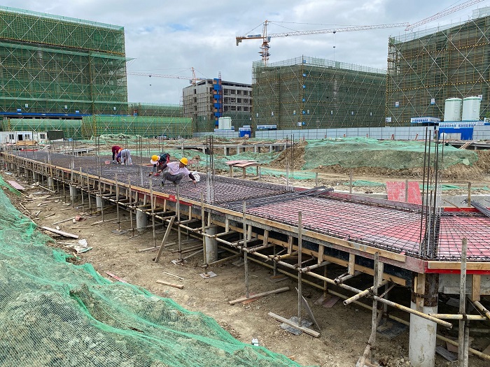 圖為合肥分公司岳西恒泰城項(xiàng)目混凝土澆筑施工