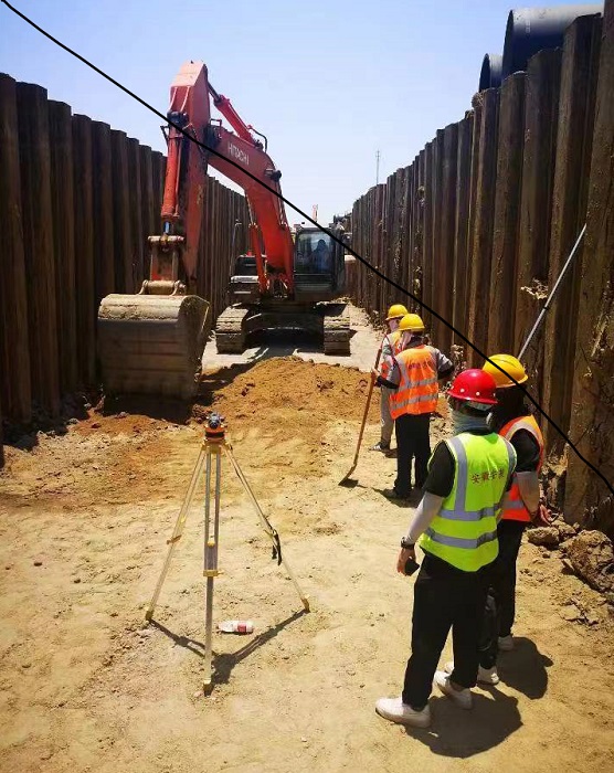 圖為市政分公司四水廠DN1800DN1400供水管道遷建工程管網(wǎng)項(xiàng)目槽底換填,鋪砂墊層