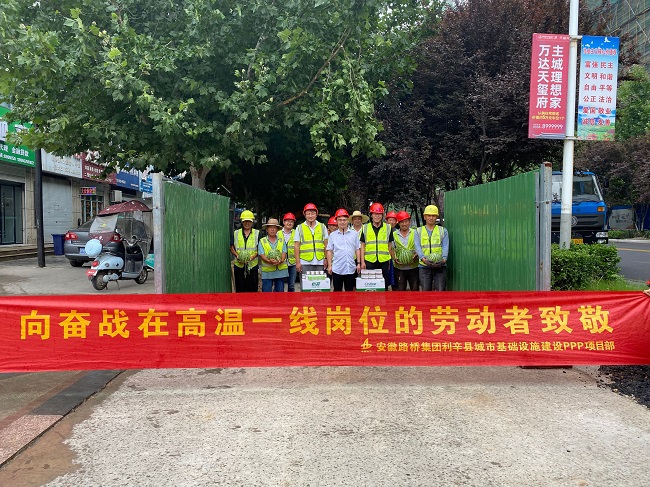 利辛城市基礎設施建設PPP項目,工人們正與高溫抗衡,施工現(xiàn)場熱浪襲人。為推進工程項目建設,項目部采取錯峰施工、增加人員機械,并持續(xù)開展安全生產(chǎn)檢查,加強安全監(jiān)管,持續(xù)關注高溫期間施工現(xiàn)場及人員安全,對作業(yè)班組開展防暑降溫和中暑急救知識宣講,提高工人高溫期間自我保護意識,并發(fā)放西瓜、礦泉水等防暑降溫物資。