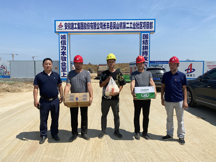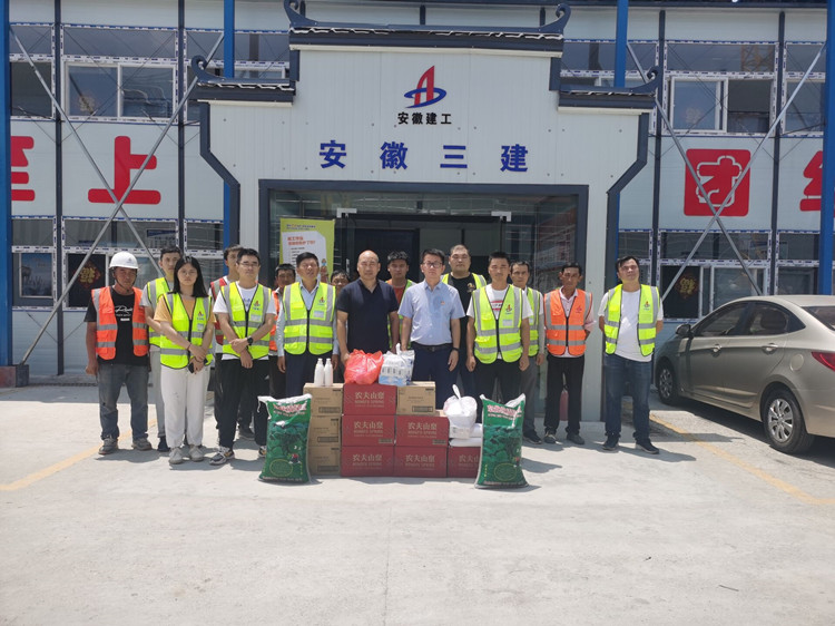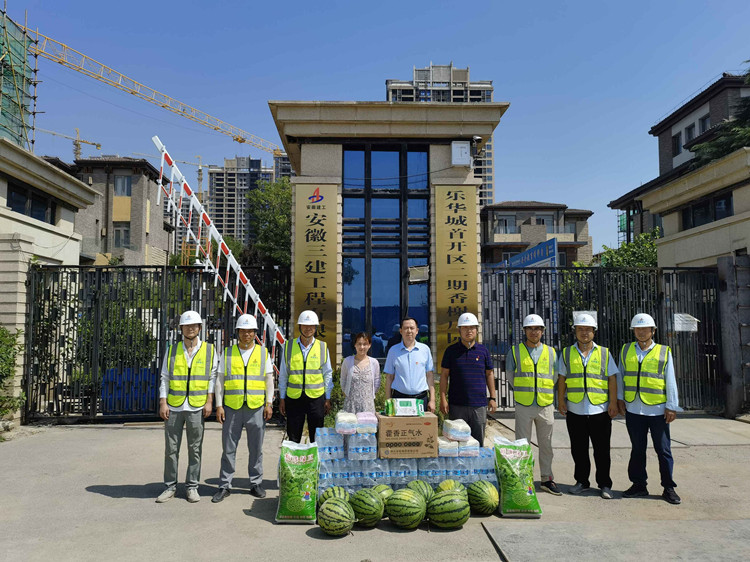 自7月13日開始,基礎(chǔ)公司領(lǐng)導(dǎo)班子成員先后前往長(zhǎng)豐縣吳山鎮(zhèn)第二社區(qū)等6個(gè)項(xiàng)目開展送清涼活動(dòng),為在高溫下作業(yè)的一線工作人員送去礦泉水、綠豆、白糖、藿香正氣水等防暑降溫用品,給他們送去烈日下的清涼和關(guān)懷。 基礎(chǔ)公司經(jīng)理、支部書記袁學(xué)明代表基礎(chǔ)公司,對(duì)奮戰(zhàn)在項(xiàng)目一線正在進(jìn)行工程基礎(chǔ)施工的項(xiàng)目職工進(jìn)行了慰問(wèn),同時(shí)提醒大家要靈活安排工作,注重崗位安全,在工作的同時(shí)要注意防暑降溫,增強(qiáng)自我安全防范意識(shí),確保身體健康。