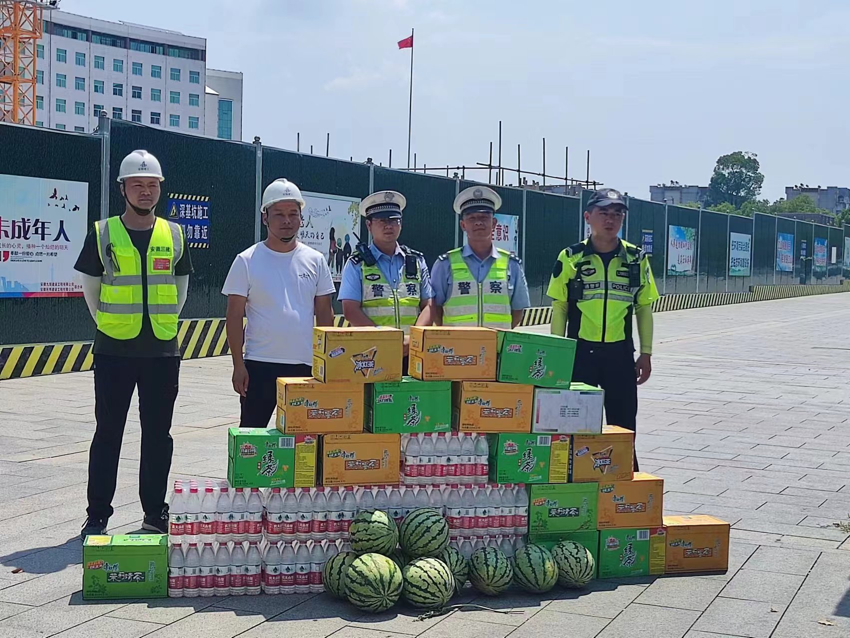 自開工以來(lái),項(xiàng)目的順利推進(jìn)離不開廬江縣交警中隊(duì)的大力支持。為了表達(dá)對(duì)交警同志們的感激之情,7月15日上午,水利交通公司廬江縣廬城鎮(zhèn)1#、2#、3#片區(qū)雨污分流改造及管網(wǎng)修復(fù)項(xiàng)目管理人員購(gòu)買了送清涼物資2車,包括礦泉水、綠茶、西瓜等,讓堅(jiān)守在一線的交警們感受到“警民一家親”的溫馨。