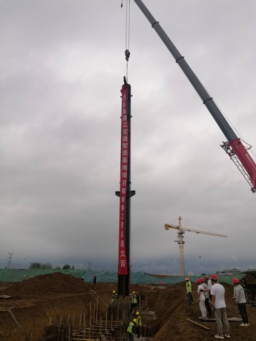 2022年7月26日上午8:18分,在項(xiàng)目建設(shè)單位、監(jiān)理單位、總包單位等領(lǐng)導(dǎo)的共同見證下,安徽安裝公司安徽建工交通智造基地項(xiàng)目鋼結(jié)構(gòu)工程迎來了隆重的鋼結(jié)構(gòu)首吊儀式。只見首根長約21.2米、重約11.6噸的鋼柱緩緩升起、穩(wěn)穩(wěn)落地,精準(zhǔn)定位在安裝位置上,這標(biāo)志著該項(xiàng)目正式進(jìn)入鋼結(jié)構(gòu)主體安裝階段。