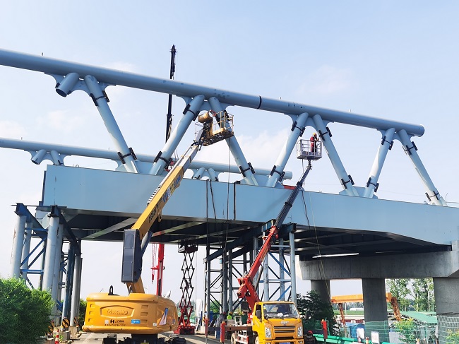 7月28日,路橋集團亳蒙高速01標項目立德樞紐鋼桁架橋半幅施工完成,拉開了鋼桁架橋全面施工的序幕。