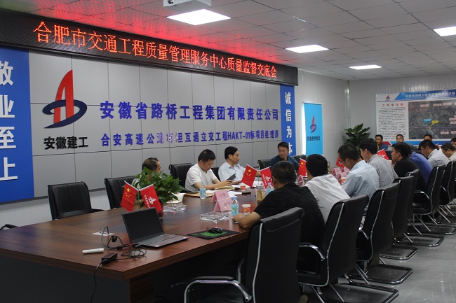 7月29日,合肥市交通工程質量管理服務中心主任潘勇一行赴安徽路橋集團合安高速柯坦互通項目召開質量監(jiān)督交底會暨質量專項督查。廬江縣交通運輸局黨組成員宋衛(wèi)東,公司副督察員王家林,二分公司總經(jīng)理張立兵及項目參建單位主要負責人參加。