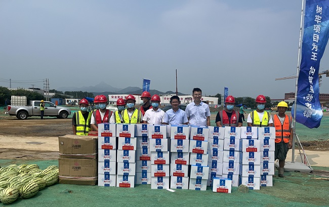 烈日炎炎,酷暑難當(dāng)。8月3日,棲霞市總工會(huì)黨組成員、一級(jí)主任科員柳廣東一行赴安徽路橋集團(tuán)松山污水處理廠項(xiàng)目開展“送清涼”活動(dòng)。