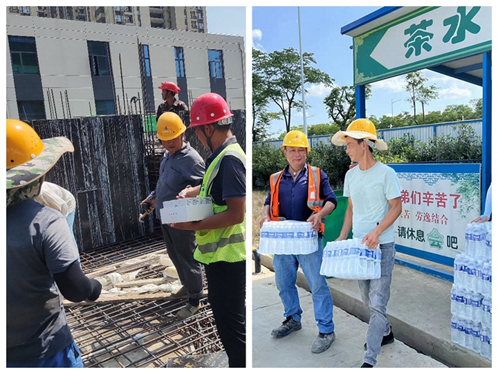 為了有效做好項目防暑降溫工作,項目部提前制定防暑降溫工作預案,采用“搶兩頭、避中間、夜間施工”的做法進行夏季施工,同時項目上及時發(fā)放十滴水、人丹、風油精、礦泉水、毛巾等防暑降溫物品,并在施工現場堅持開展每日熬制綠豆湯活動,為每位員工帶來絲絲清涼,激發(fā)一線人員搶工大干熱情。