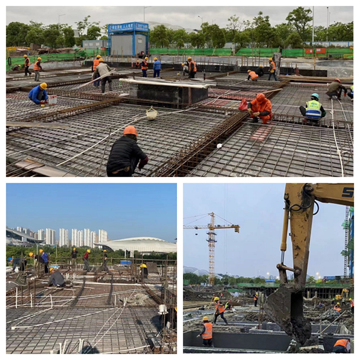 結合“強基固本保安康,提質增效爭一流”勞動競賽的開展,項目管理人員及施工班組長通過多次討論,擬定了切實可行的措施,項目上除中午高溫期間休息外,其它時間均是一派搶工大干的勞動場面,樁基聲、挖機聲、鋼筋及模板加工機械聲、商品砼運輸及泵送聲相互交織,木工、鋼筋工、瓦工、防水工、架子工、安裝工在現場川流不息。