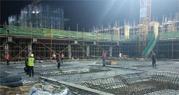 入夏以來,合肥市持續(xù)高溫給現(xiàn)場施工增添了很大難度,在保障現(xiàn)場施工不停滯的同時做好工人的身體健康管理,項目立即調(diào)整現(xiàn)場作業(yè)時間,“休中間,戰(zhàn)兩邊”。晨光熹微,工人同志已經(jīng)熱火朝天地進行現(xiàn)場建設(shè);晚霞滿天,工人同志又開始晚間時段的搶工建設(shè)。為確保八地塊1#樓人防底板鋼筋順利通過驗收,棟號長組織班組每天施工到深夜,為勞務(wù)工人提供水和泡面,人性化的服務(wù)充分調(diào)動工人的積極性,最終,人防驗收按時完成,順利通過驗收,施工質(zhì)量還得到了人防站的認(rèn)可。