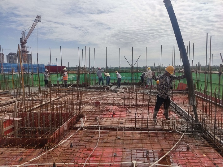 阜陽(yáng)市受高溫天氣影響,攪拌站供電受限,混凝土上午12點(diǎn)至夜間24點(diǎn)無(wú)法生產(chǎn)混凝土,但這阻擋不了項(xiàng)目部搶工履約的決心。8月22日凌晨24點(diǎn),2#樓四層結(jié)構(gòu)混凝土準(zhǔn)時(shí)在棟號(hào)長(zhǎng)的監(jiān)督下有序的進(jìn)行澆筑,凌晨5點(diǎn)44分歷經(jīng)5個(gè)多小時(shí)完成澆筑工作。管理人員守崗盡責(zé),從混凝土澆筑質(zhì)量、人員設(shè)備配置及安全管控等多方面嚴(yán)格把控。