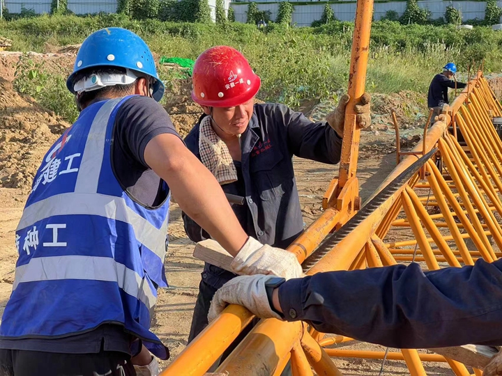 安裝班組卯足干勁,與時間賽跑、與高溫對抗,各小組充分發(fā)揮職能,持續(xù)提升“專業(yè)化、標(biāo)準(zhǔn)化、精細(xì)化”能力和水平,守牢“安全紅線”,筑牢“疫情防線”,以“干”字當(dāng)頭,“實”字為先,堅定信心,以沖鋒姿態(tài)奏響專題勞動競賽最強音。勞動競賽僅三天的時間,便順利完成了兩臺塔式起重機的安裝任務(wù)。