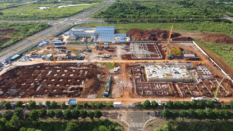 項目6月份動工以來,受多個臺風影響,??谶B續(xù)暴雨,給基礎施工增加了很大的難度。項目部果斷拿出措施,通過租借鋼板、購買磚渣墊路等方式,協(xié)調(diào)人員和機械見縫插針式地往前趕。為了第二天能正常挖土方,夜里兩點,項目生產(chǎn)經(jīng)理王永宏親自指揮挖機平整道路。最終,D1動力中心按期完成了正負零以下結(jié)構(gòu),而6月8日開始施工的A1通訊樞紐樓和A2數(shù)據(jù)中心樁基工程,7月20日就完成了共723根樁基引孔和管樁施打的任務。截止到7月底,進度計劃較合同計劃仍然提前約15天。