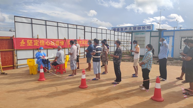 8月4日,海南省出現(xiàn)新一輪新冠肺炎疫情以來,??谑姓掷m(xù)發(fā)布多次全市靜態(tài)管理通知,嚴禁人員和車輛流動,并要求項目所有人員“一天一檢”。項目部積極響應??谑形⑹姓咔榉揽匕才?,果斷啟動項目疫情防控應急預案,將項目各出入口進行封閉,執(zhí)行全面封閉管理。全面摸排更新項目所有人員“一人一檔”資料,確保不漏一人,嚴禁外來人員、嚴格控制外來物資車輛進入。