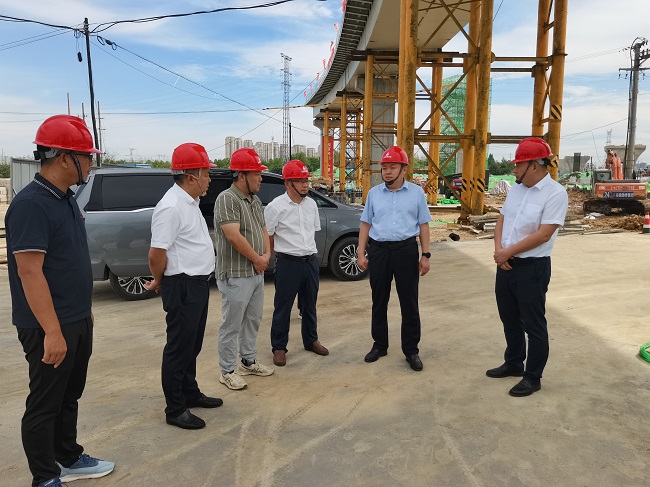 任杰一行深入項目鋼箱梁架設施工現(xiàn)場,實地查看并了解項目生產(chǎn)進度、安全質(zhì)量、重難點等情況,并召開座談會,與交建公司及項目部管理團隊、各施工單位展開深入交流。