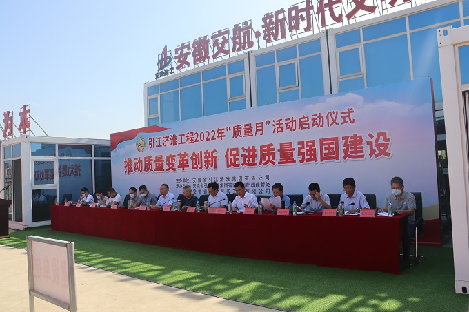 近日,引江濟(jì)淮工程2022年“質(zhì)量月”活動啟動儀式在安徽交航公司引江濟(jì)淮項目新時代文明實踐點成功舉辦。省引江濟(jì)淮集團(tuán)黨委委員、副總經(jīng)理陳圣剛,安徽交航公司黨委副書記、總經(jīng)理杜海峰出席會議。省引江濟(jì)淮集團(tuán)質(zhì)量安全管理部部長錢建輝和所屬各建管處、子分公司負(fù)責(zé)人,各參建單位項目代表和一線隊伍代表參加儀式。